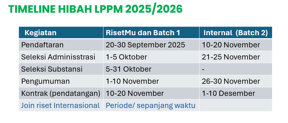 Pengumuman Terbaru terkait dengan aturan maupun informasi Penelitian dan Pengabdian kepada Masyarakat.